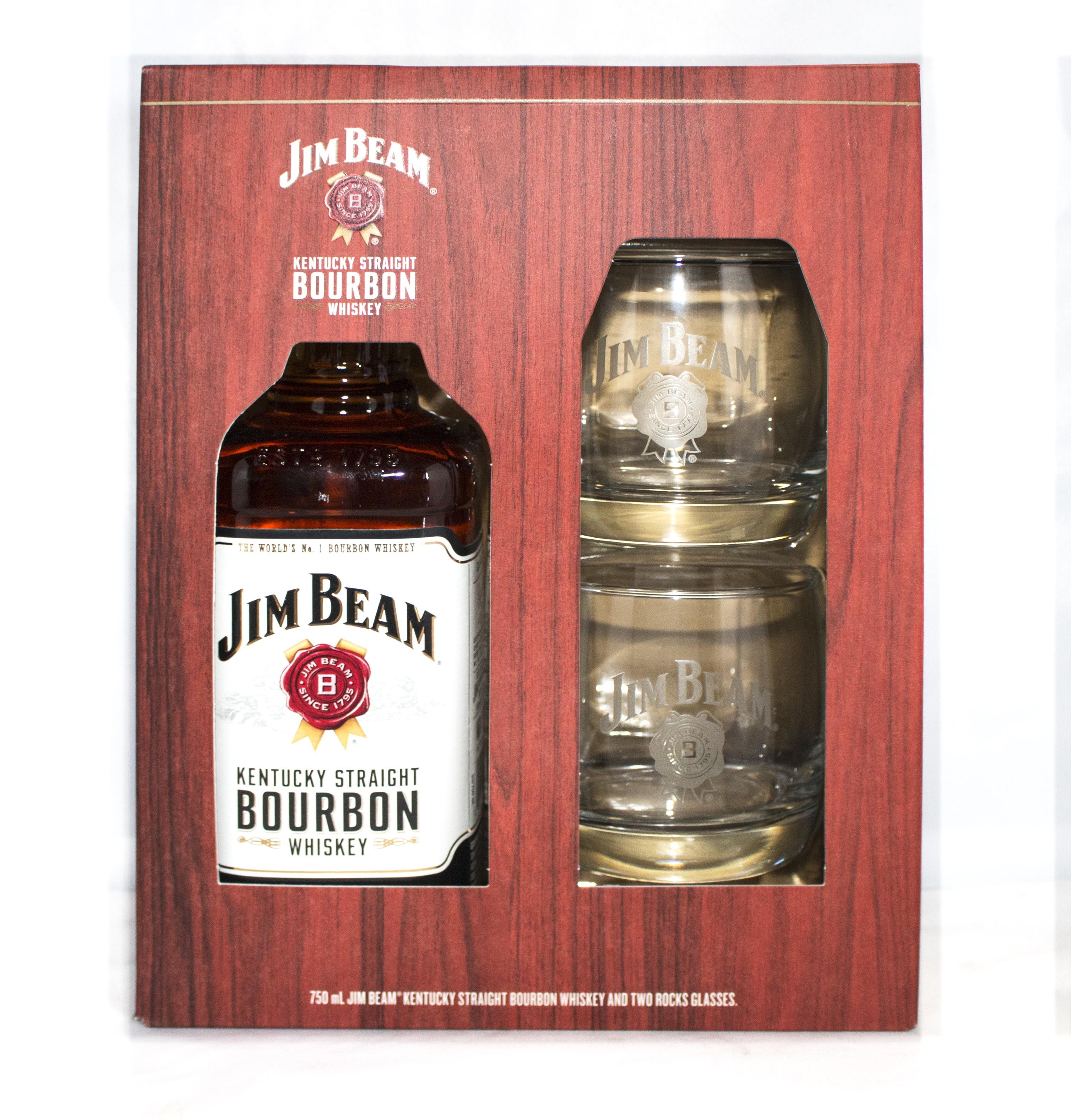 Jim Beam Bourbon Kentucky Gft Pk W/ 2 Rock Glasses 750ml